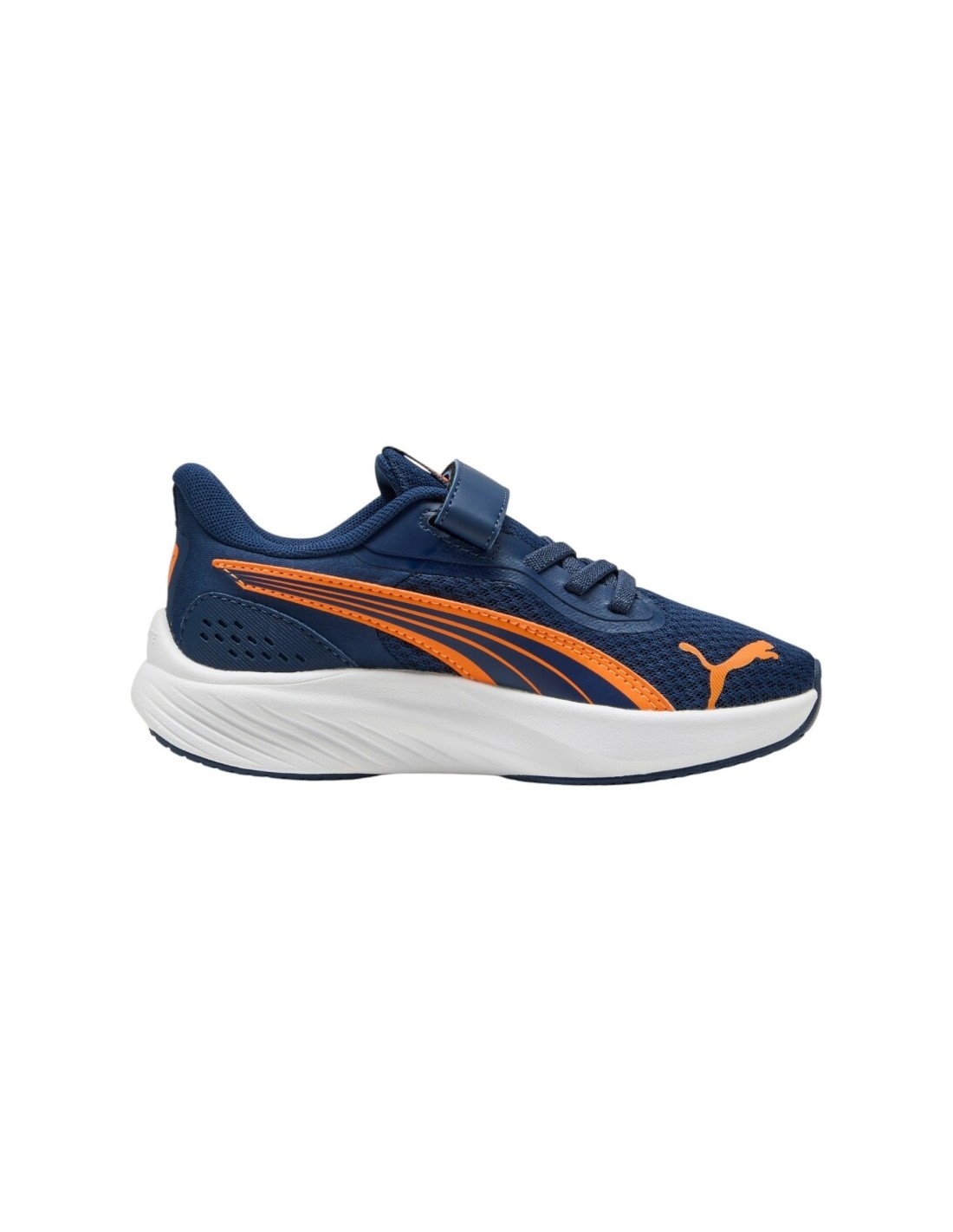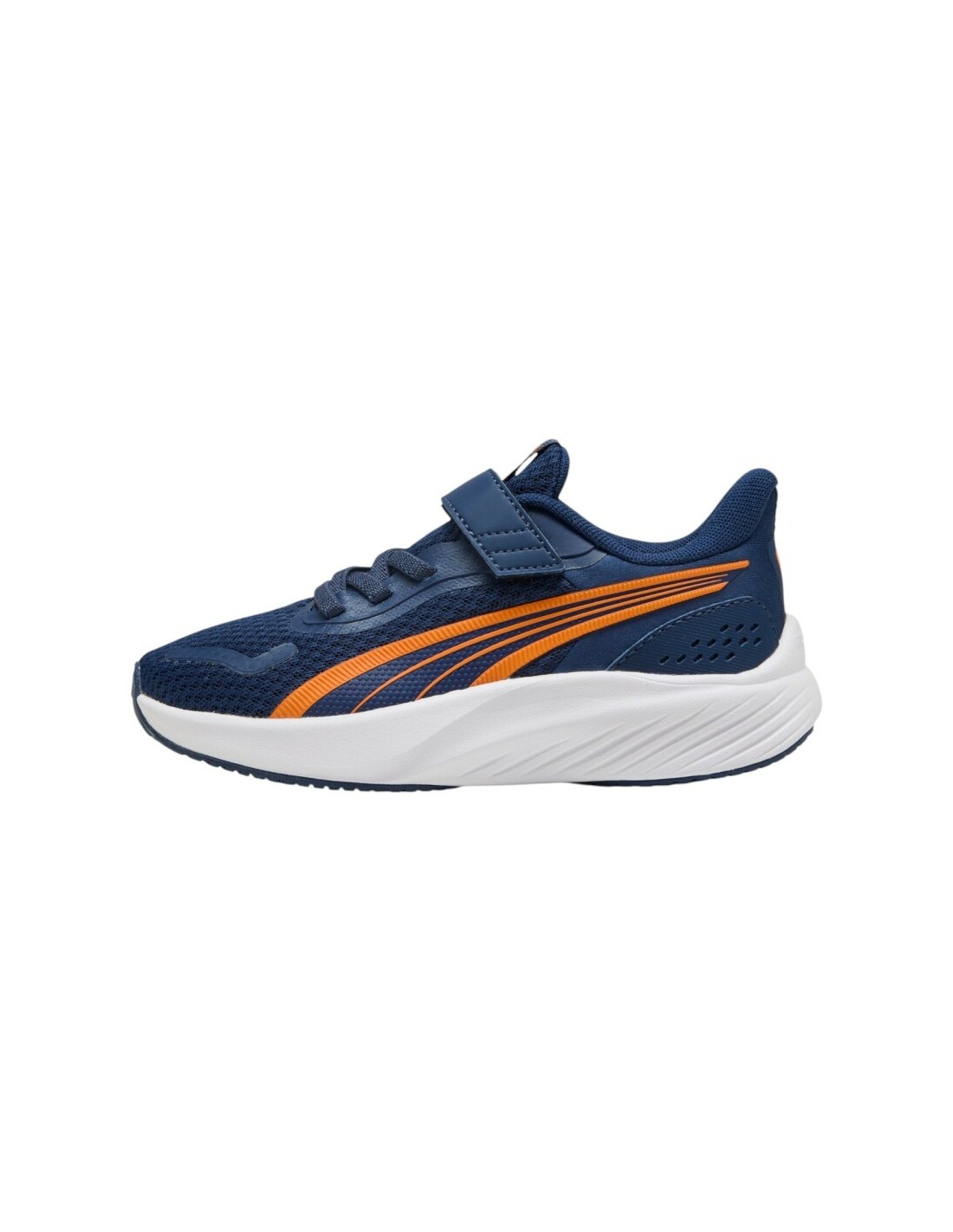 Zapatillas deportivas ligeras y cómodas, diseñadas para el uso diario y la práctica deportiva. Fabricadas en material sintético transpirable que favorece la ventilación del pie. Cierre con velcro para un ajuste firme y seguro. Plantilla acolchada que brinda confort en cada pisada y suela de goma flexible que asegura buena tracción en distintas superficies. Diseño moderno con el logo Puma en los laterales.