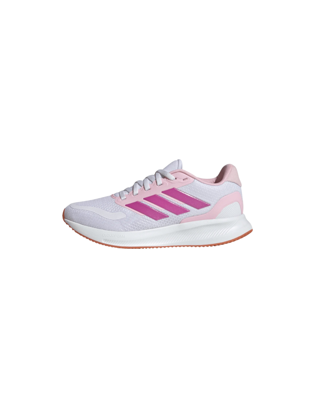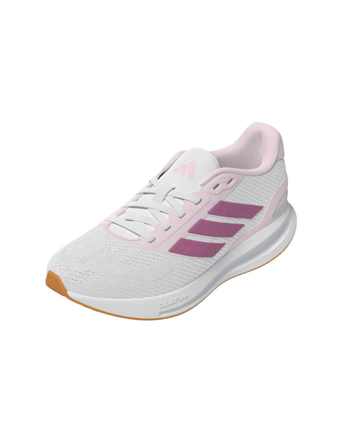 Técnicamente, la Runfalcon 5 destaca por su construcción en malla técnica transpirable, que asegura una ventilación constante del pie, evitando la acumulación de humedad durante el ejercicio. La mediasuela incorpora la tecnología de amortiguación Cloudfoam, un compuesto de EVA inyectada que ofrece una pisada suave y reactiva, absorbiendo los impactos de manera eficiente para proteger las articulaciones en fase de crecimiento. Además, el exterior cuenta con refuerzos sintéticos en el mediopié y el talón, proporcionando un soporte estructural que mejora la durabilidad general frente a la abrasión del terreno.