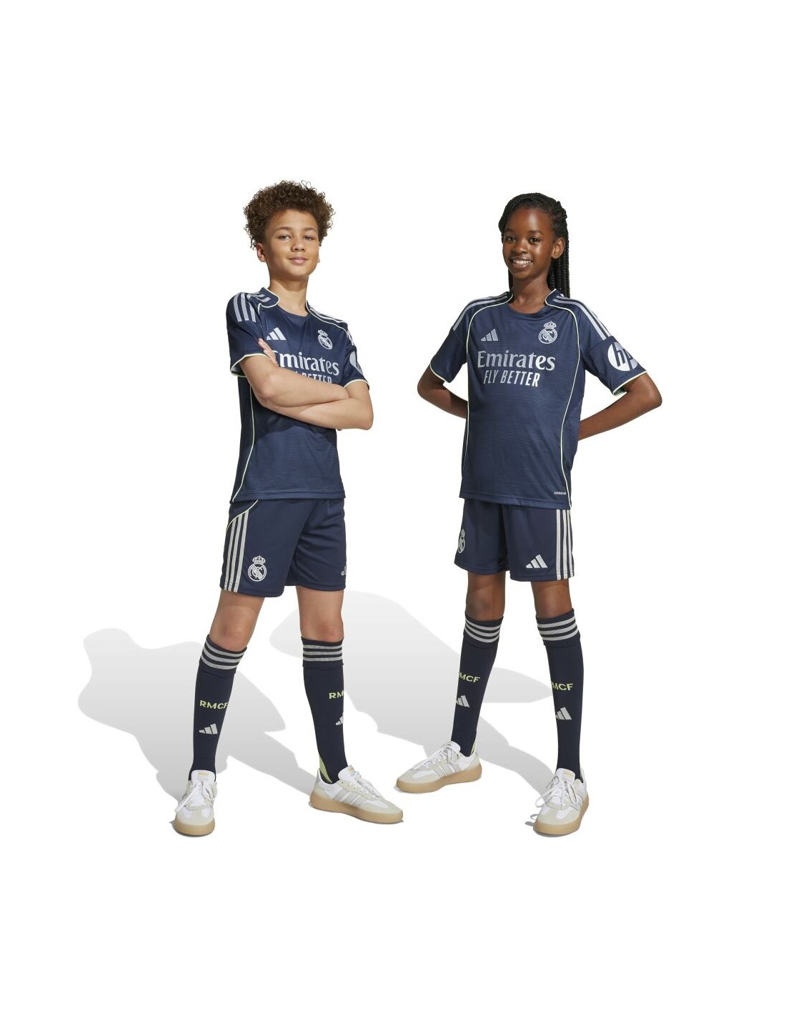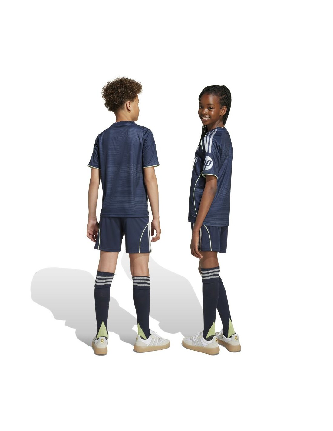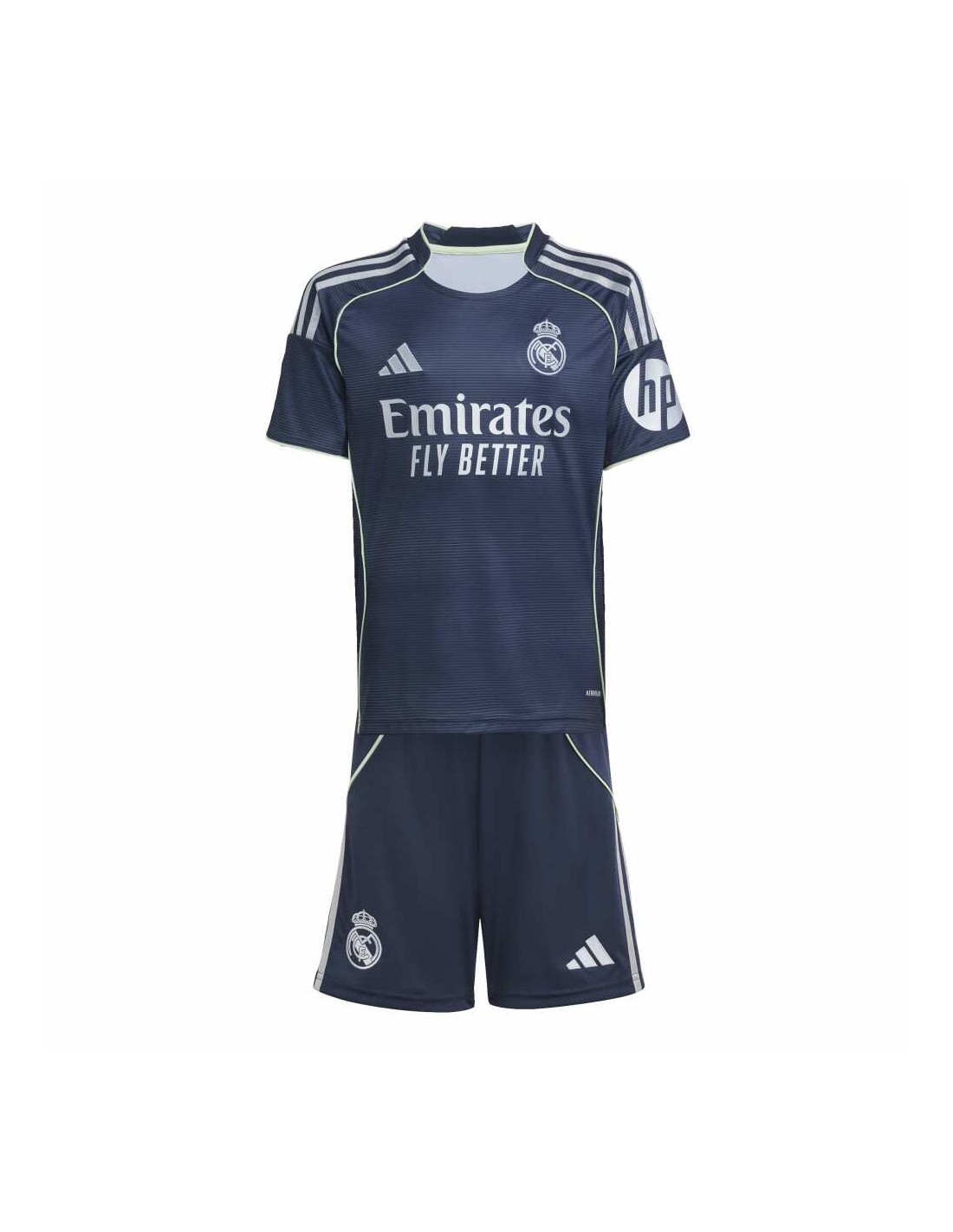 No importa si has visitado el mágico Bernabéu o no, demuestra tu pasión madridista con este conjunto adidas para adolescentes inspirado en el estadio. Se trata de una versión para peques del conjunto segunda equipación que visten los jugadores, e incorpora un estampado efecto muaré y detalles metalizados plateados, que imitan la reluciente fachada del estadio. No importa si estás en las gradas vitoreando a tus héroes o si están en el campo imitándolos, la tecnología AEROREADY mantiene la piel seca.