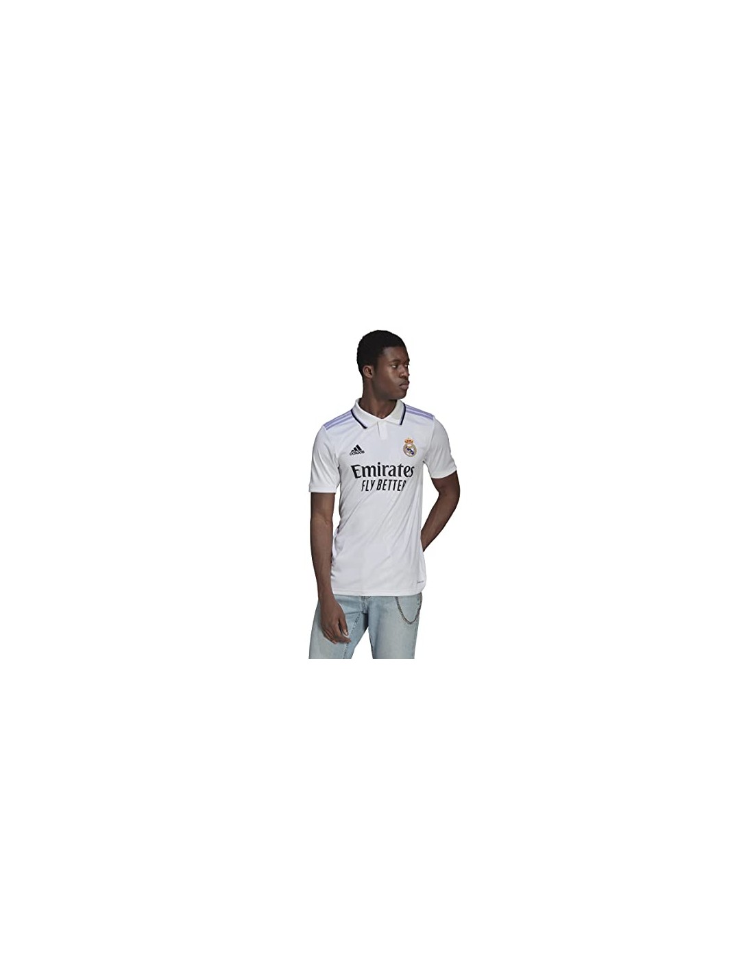 Sencilla, clásica y creada para marcar un hito. Esta camiseta adidas de la primera equipación del Real Madrid luce detalles en morado claro y el escudo del club repetido sobre el fondo blanco. Esta versión para jóvenes aficionados te permite animar con comodidad gracias a su tejido transpirable AEROREADY que mantiene la piel seca.