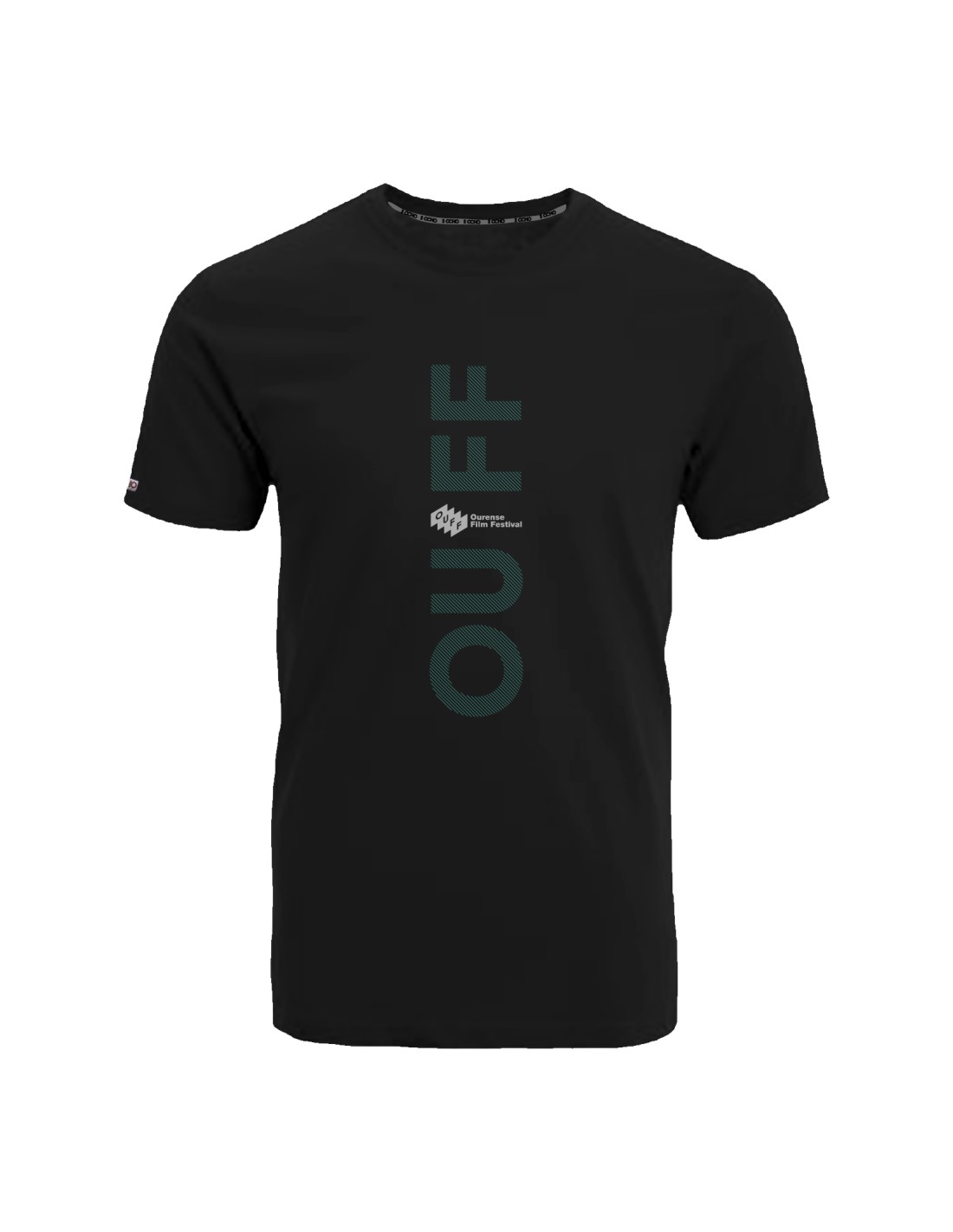 Camiseta de algodón con el logo del Ourense Film Festival en color verde y blanco. Prenda de estilo sencillo y atemporal para conmemorar la 30ª edición del OUFF.