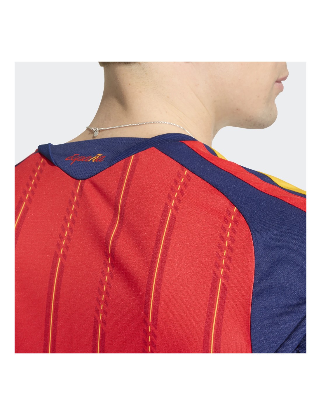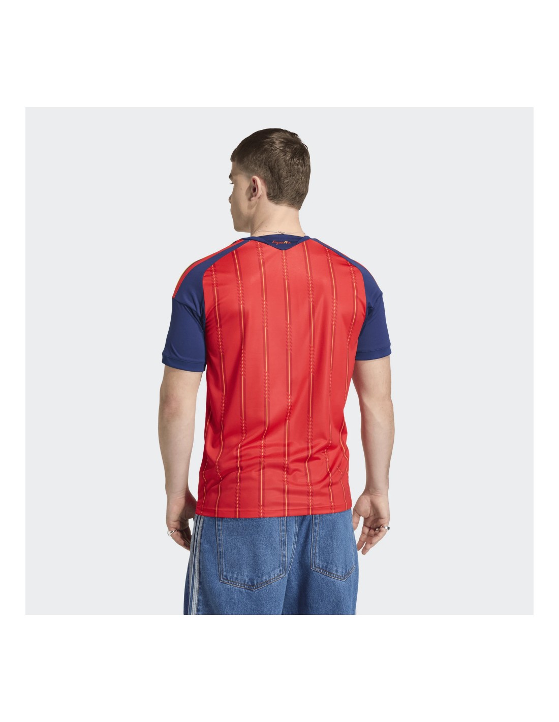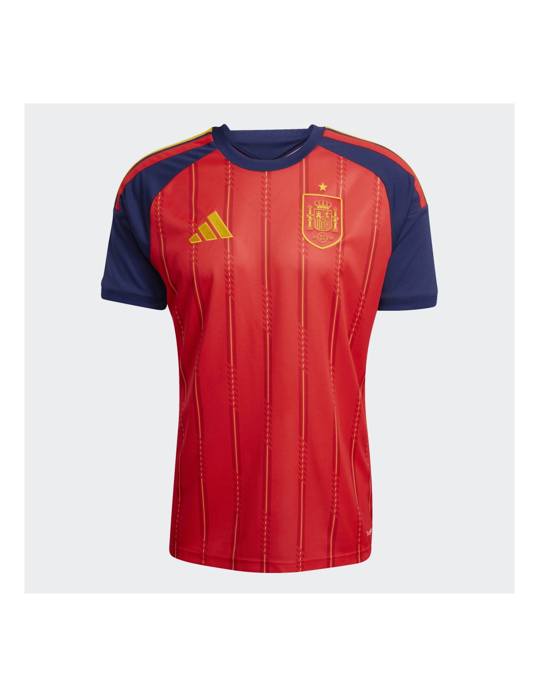 La tecnología Adidas AEROREADY es el núcleo de esta camiseta, garantizando una gestión de la humedad excepcional al absorber el sudor de la piel y mantener al deportista seco y fresco incluso en los momentos de mayor tensión del partido. Su tejido de punto doble presenta una estructura microperforada que favorece el flujo de aire, optimizando la ventilación. El escudo de la Selección Española y el logotipo de Adidas aparecen termosellados o bordados con precisión (según versión), mientras que el diseño del cuello y los puños ha sido estilizado para ofrecer un ajuste ergonómico que permite una libertad de movimiento total, ya sea en la grada animando o en el terreno de juego.
