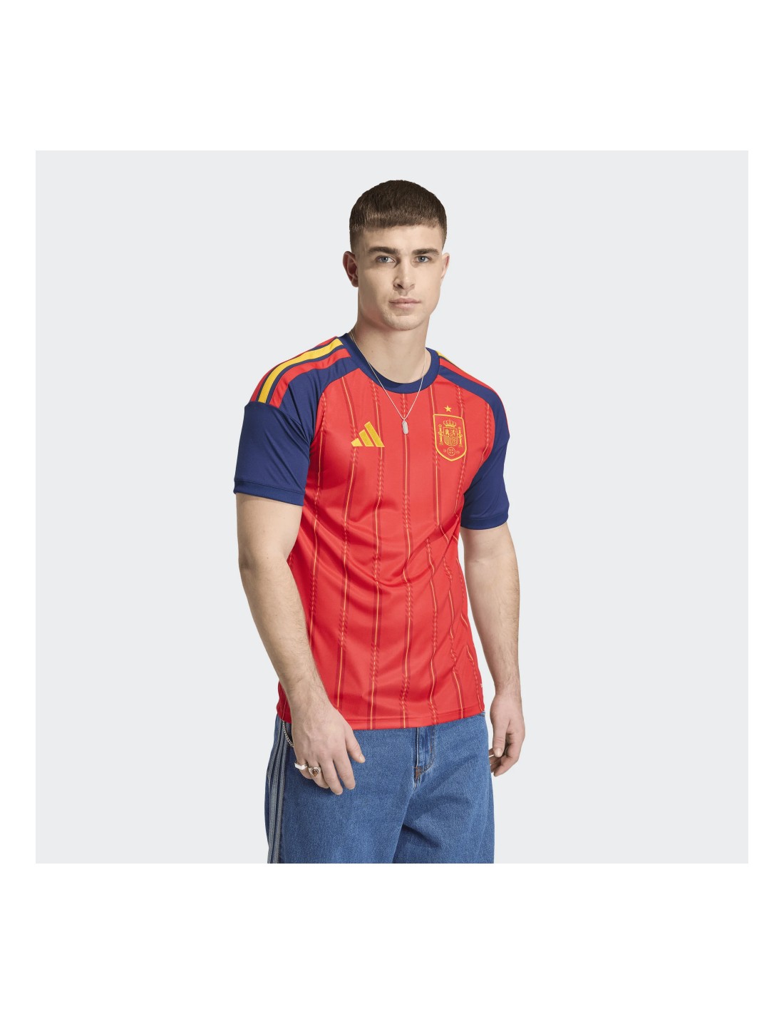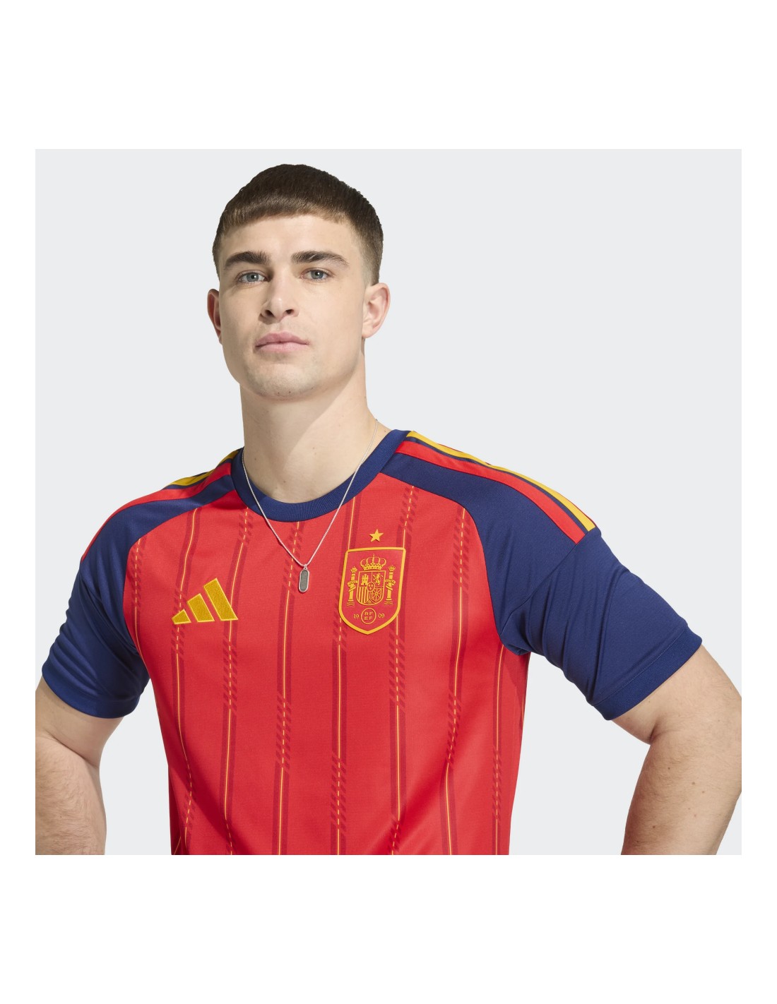 La camiseta oficial de la primera equipación de España para la temporada 2025-26 de Adidas representa la unión perfecta entre la tradición histórica de la Selección y la innovación tecnológica de vanguardia. Esta elástica, que vestirán los jugadores de la RFEF en sus compromisos internacionales, luce el emblemático color rojo que define nuestra identidad, combinado con detalles exclusivos que rinden homenaje al fútbol español. Diseñada para ofrecer un rendimiento de élite, esta prenda es un símbolo de orgullo y pasión, fabricada con materiales reciclados de alto rendimiento para apoyar la sostenibilidad sin sacrificar la calidad profesional.