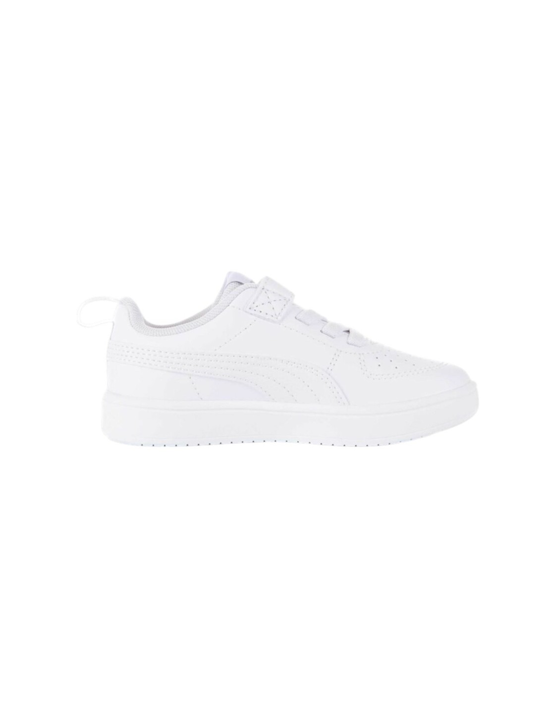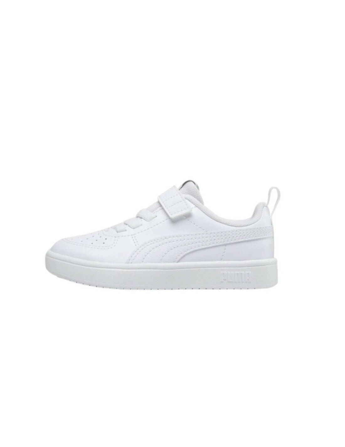 Zapatilla blanca PUMA RICKIE AC+PS white 385836-01 JRDESCRIPCIÓN:Zapatillas blancas para niño/a de la marca Puma. Están confeccionadas con una parte superior de piel sintética y presenta perforaciones en la zona de la puntera. Contiene un tirador en el talón para ponértelas y quitártelas fácilmente. Suela de goma.