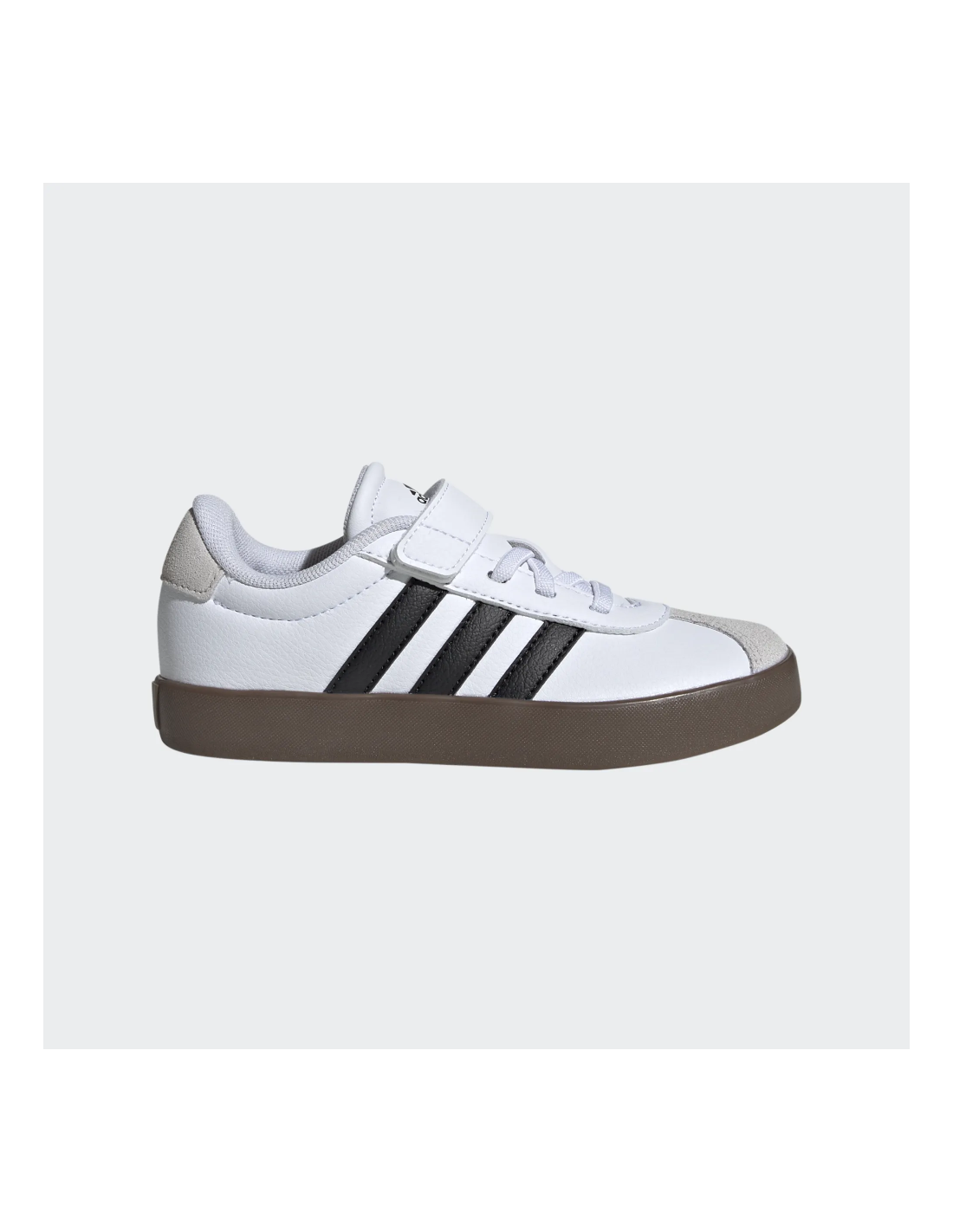 Las adidas VL Court 3.0 EL C son zapatillas deportivas diseñadas para niños, combinando estilo clásico y comodidad. La parte superior está confeccionada en cuero sintético, complementada con una puntera de ante suave que añade durabilidad y un toque de estilo. El cierre de velcro facilita que los más pequeños puedan ponerse y quitarse las zapatillas con facilidad.